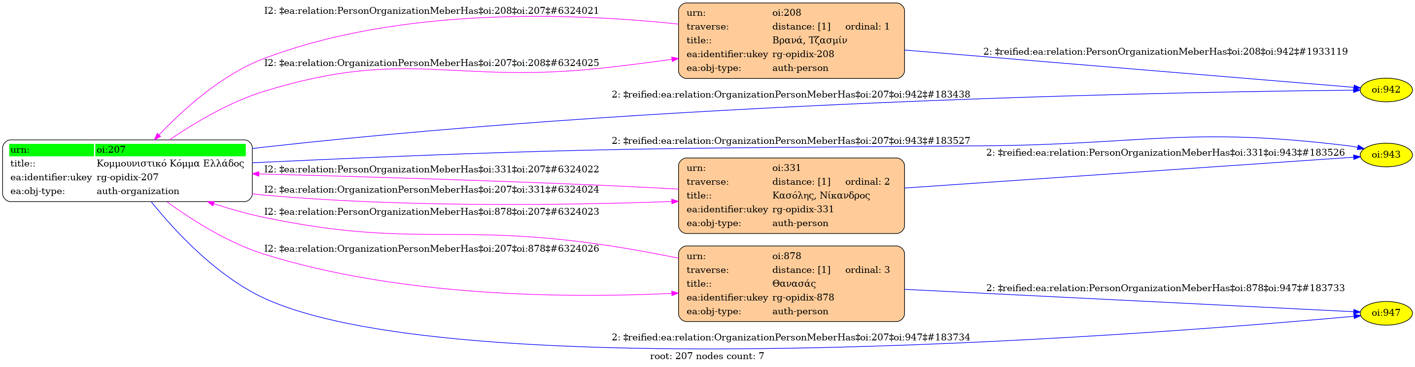 Internal display of the 207 entity interconnections
