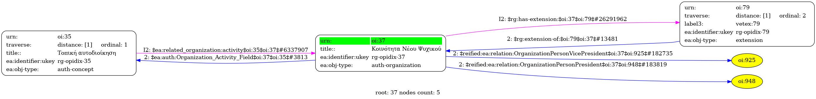 Internal display of the 37 entity interconnections (Node labels correspond to identifiers)