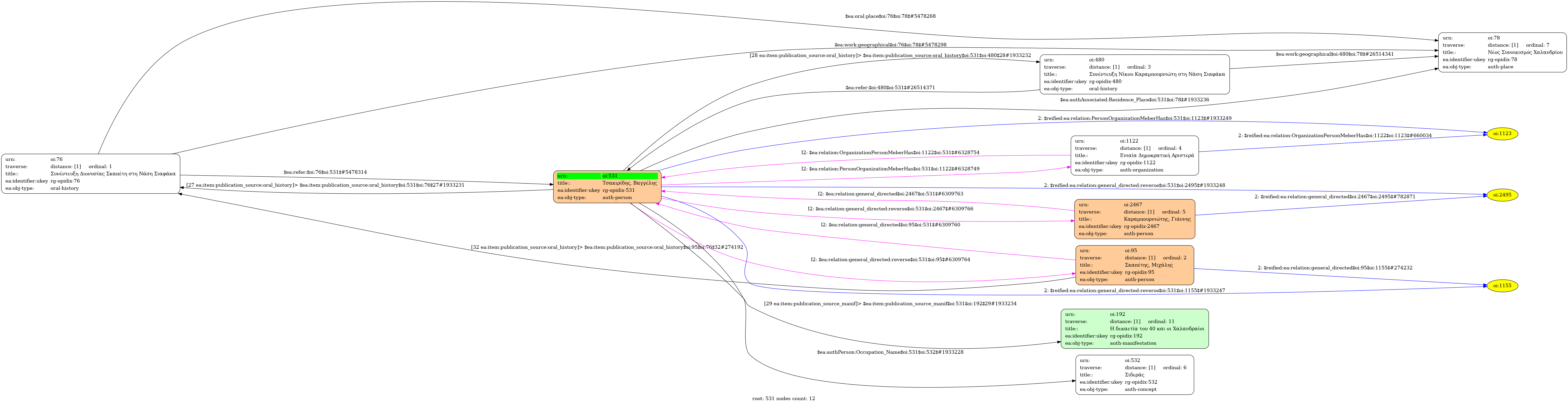Internal display of the 531 entity interconnections (Node labels correspond to identifiers)